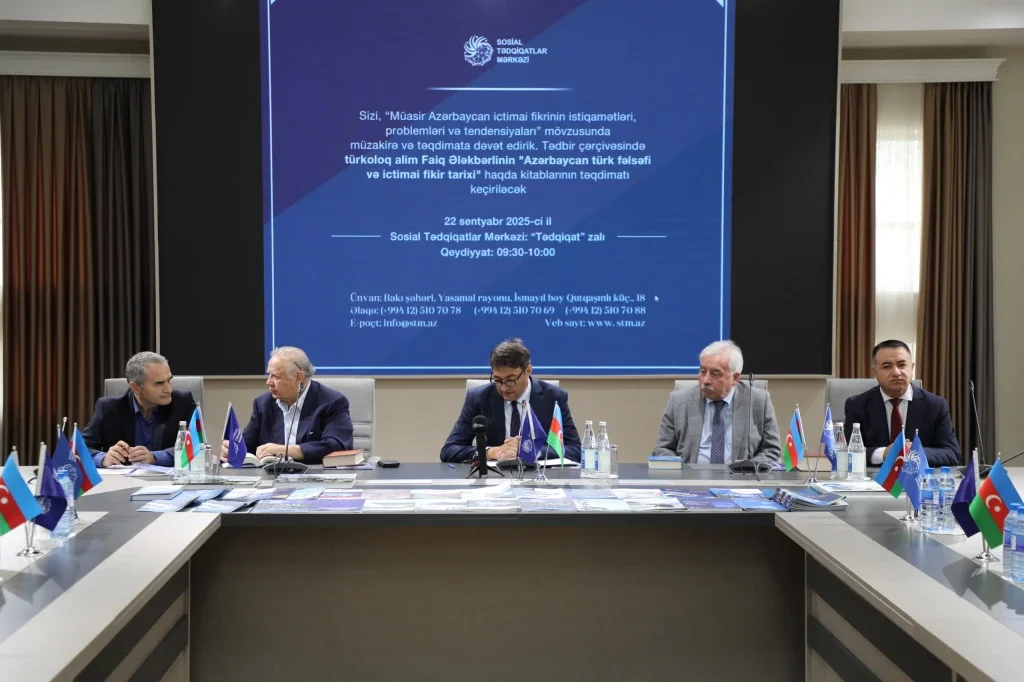 Faig Alekberli'nin Üç Ciltlik Kitaplarının Tanıtımı Sosyal Araştırmalar Merkezi'nde Yapıldı![]() Bakü – 23.09.25. /Türkel Media/: 22 Eylül 2025 tarihinde, Sosyal Araştırmalar Merkezi'nde "Modern Azerbaycan Kamu Düşüncesinin Yönleri, Sorunları ve Eğilimleri" konulu bir tartışma ve sunum gerçekleştirildi. Toplantı kapsamında, Türkoloji alanında tanınmış bir akademisyen, Azerbaycan Türk Bilim ve Edebiyatı Enstitüsü Felsefe ve Sosyoloji Enstitüsü Türk Halkları Felsefi Düşünce Tarihi ve Çağdaş Felsefesi Anabilim Dalı Başkanı ve Doçent Faig Alekberli'nin "Azerbaycan Türk Felsefe ve Kamu Düşüncesi Tarihi. XIX-XX. Yüzyıllar" başlıklı üç ciltlik kitabının tanıtımı da gerçekleştirildi. ![]() Etkinliğin açılış konuşmasını yapan Sosyal Araştırmalar Merkezi Medya ve İletişim Daire Başkanı Aziz Alibeyli, buradaki temel amacın Azerbaycan'ın modern kamuoyu alanında güncel sorunları ve beklentileri tartışmak ve Türkolog Faig Alekberli'nin üç ciltlik kitabının tanıtımını yapmak olduğunu söyledi. Daha sonra etkinliğe katılan milletvekilleri, bilim insanları, kamu figürleri, medya temsilcileri ve bu alana ilgi duyan diğer kişiler, modern Azerbaycan kamuoyunun gelişim dinamikleri, mevcut zorluklar ve gelecekteki yönelimler hakkında görüşlerini dile getirerek fikir alışverişinde bulundular. ![]() Devlet adamı, diplomat, bilim insanı, Tarih Bilimleri Doktoru ve şu anda Türk Devletleri Teşkilatı Aksakallar Konseyi Azerbaycan temsilcisi olan Hasan Hasanov, konuşmasında hem konunun güncel olduğunu hem de Faig Alekberli'nin kitaplarının Azerbaycan bilim ve felsefesine her iki yönde de önemli bir katkı sağladığını söyledi. Ona göre, üç ciltlik kitabın "Azerbaycan Türk Felsefesi" adının verilmesi biraz tartışmalı olsa da, Azerbaycan halkının bir bütün olarak temel tarihi, kültürü ve felsefesinin Türk etnosuyla bağlantılı olduğu şüphesizdir. ANAS Felsefe ve Sosyoloji Enstitüsü Müdürü Profesör İlham Mammadzadeh, kitabın adının kendisi için de tartışmalı olduğunu ve bunun enstitüde düzenlenen etkinliklerde dile getirildiğini söyledi. Aynı zamanda, kitaplar çok az materyalizm içeriyor ve daha çok ulusal idealist bir ruhu yansıtıyor. I. Mammadzadeh, kitabın her açıdan büyük bir emekle tamamlandığını söyledi. Kitaplarda birçok ilginç ve yeni nokta bulunduğunu ve yazarın kendine özgü üslubunun özellikle dikkat çekici olduğunu belirtti. F. Alekberli'nin, kendisine yöneltilen eleştirileri dikkate alarak çalışmalarını derinleştirmesi ve felsefi birikimini artırması gerektiğini düşünüyor. ![]() Azerbaycan Halk Şairi, Filoloji Doktoru ve "Şöhrat" Nişanı sahibi Sabir Rüstemhanlı, Faig Alekberli'yi kitaplarının yayınlanmasından dolayı tebrik ederek, yaratıcı çalışmalarında başarılar diledi. S. Rüstemhanlı ayrıca, bu kitapların yayınlanmasının Felsefe ve Sosyoloji Enstitüsü'nün de bir başarısı olduğunu belirtti. Faig Alekberli'nin üç ciltlik kitabına "Azerbaycan Türk Felsefesi" adının verilmesinin doğal olduğunu ve yazarın bu çizgiyi sürdürmesi gerektiğini söyledi. ![]() Milletvekili, Siyaset Bilimi Doktoru Profesör Hikmet Babaoğlu, Faig Alekbarlı'nın üç ciltlik kitabının, milli birlik ve bütünlüğümüzü ifade etmesi ve Türk ruhunu canlandırması açısından çok önemli olduğunu söyledi. Zira Devlet Başkanımız Cumhurbaşkanı İlham Aliyev de konuşmalarında yeni bir milli düşüncenin ve Türk ailesinin öneminden bahsediyor. Dolayısıyla, bu enstitüde bu tür asırların yayınlanması, Cumhurbaşkanımızın ortaya koyduğu hedef ve fikirlerle tamamen örtüşmektedir. Bakü Devlet Üniversitesi (BSU) Felsefe Tarihi ve Kültür Çalışmaları Bölüm Başkanı Profesör Rabiyyat Aslanova, günümüzde Türk halklarının felsefesinin incelenmesi ve yaygınlaştırılmasının çok önemli olduğunu söyledi. Bu açıdan bakıldığında, Faig Alekberli'nin kitaplarının Türk halklarının felsefesi de dahil olmak üzere Azerbaycan felsefesinin incelenmesi için önemli olduğunu düşünüyor. ![]() Milletvekili ve İlahiyat Doktoru Ceyhun Memmedov, Faig Alekberli'nin çalışmalarının bir bütün olarak Azerbaycancılık ve Türkçülük üzerine kurulu olduğunu belirtti. Memmedov'a göre, üç cildin "Azerbaycan Türk Felsefesi" olarak adlandırılması biraz tartışmalı olsa da, bu durum yazarın eserini küçümsemiyor. Kitapta Azerbaycancılık konusunun daha fazla ele alınması arzu ediliyor. ![]() Milletvekili, Filoloji Doktoru Elnara Akimova, konuşmasında Faig Alekberli'nin üç ciltlik "Azerbaycan Türk Felsefi ve Toplumsal Düşünce Tarihi" adlı kitabına aşina olmasının, onun yeni bir bilimsel üslupla çalıştığını gösterdiğini söyledi. Akimova'ya göre, F. Alakberli kitaplarında birçok bilimsel soruna açıklık getirmiş ve en önemlisi kitaplarını topluma yeni ve milli bir ruhla sunmuştur. Aynı zamanda Azerbaycan felsefesi, kültürü, tarihi ve düşünürleri hakkında bir bütün olarak, yani güney-kuzey bağlamında yazmıştır. ![]() Milletvekili Sevinc Hüseynova, konuşmasında Faig Alekberli'nin böyle bir eser yazmasının çok önemli olduğunu söyledi. Hüseynova'ya göre, ulusal ideoloji ve ulusal meselelerin önem kazandığı bir dönemde bu tür kitapların oluşturulması büyük bir katkıdır. Hüseynova'ya göre, Faig Alakbarlı tek başına bir enstitünün çalışmalarını yürütmüştür. ![]() Üç ciltlik eserin bilimsel editörü, Felsefe Doktoru Profesör Rafail Ahmedli, Faig Alekberli'nin üç ciltlik kitabının 19.-20. yüzyıllarda yaşamış Azerbaycanlı düşünürler hakkında ansiklopedik bir derleme olduğunu belirtti. Kitapların ruhu, tüm düşünürlerin eksiksiz bir Azerbaycan-Türk kimliğiyle sunulmasıdır. Yani yazar, Azerbaycan-Türk düşü